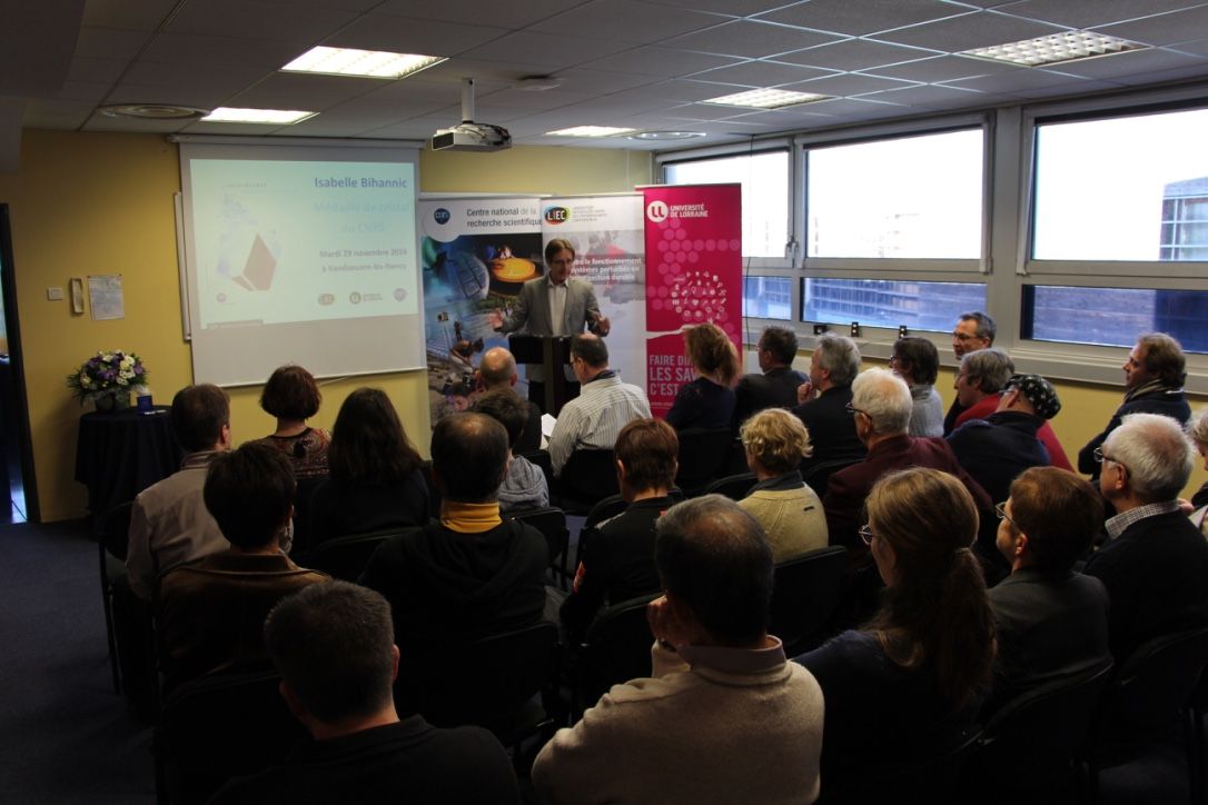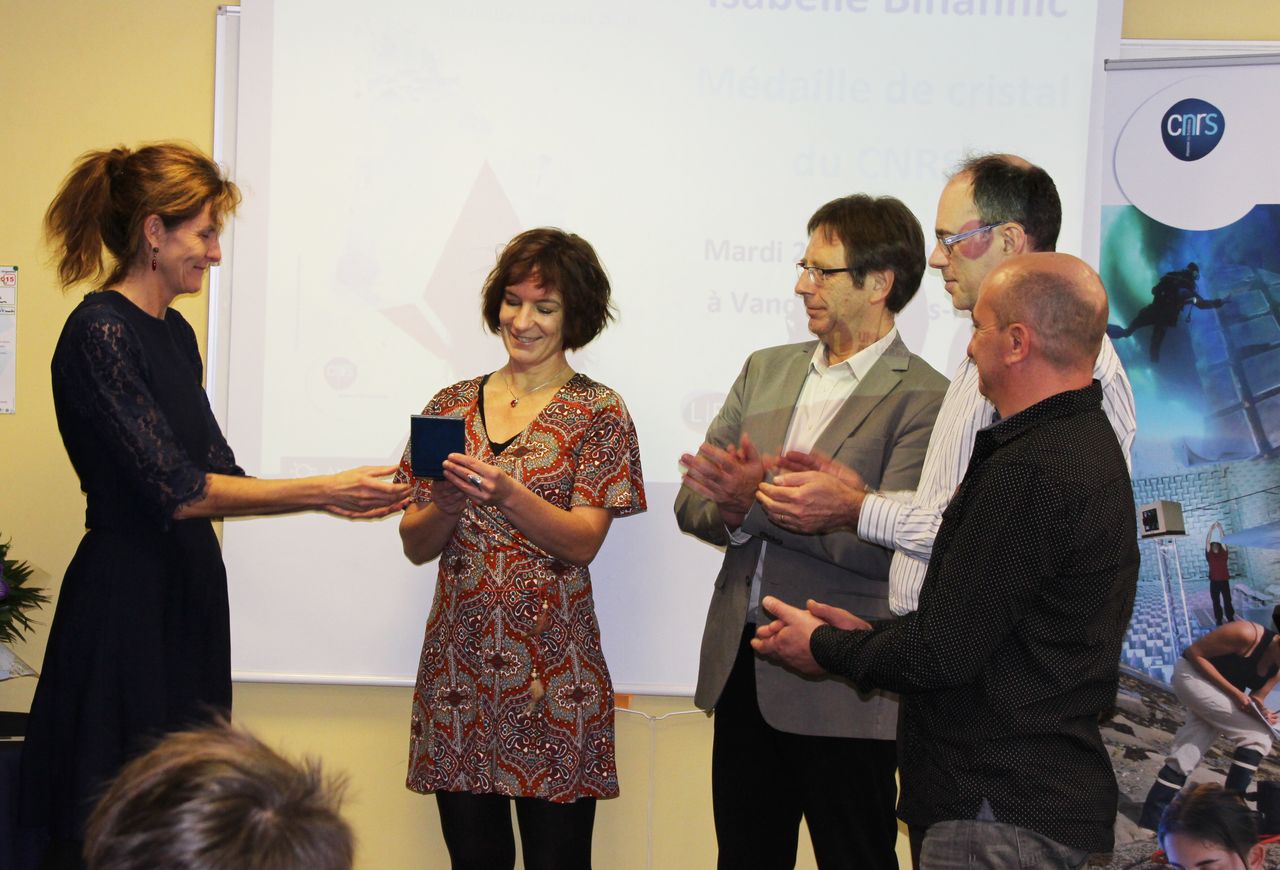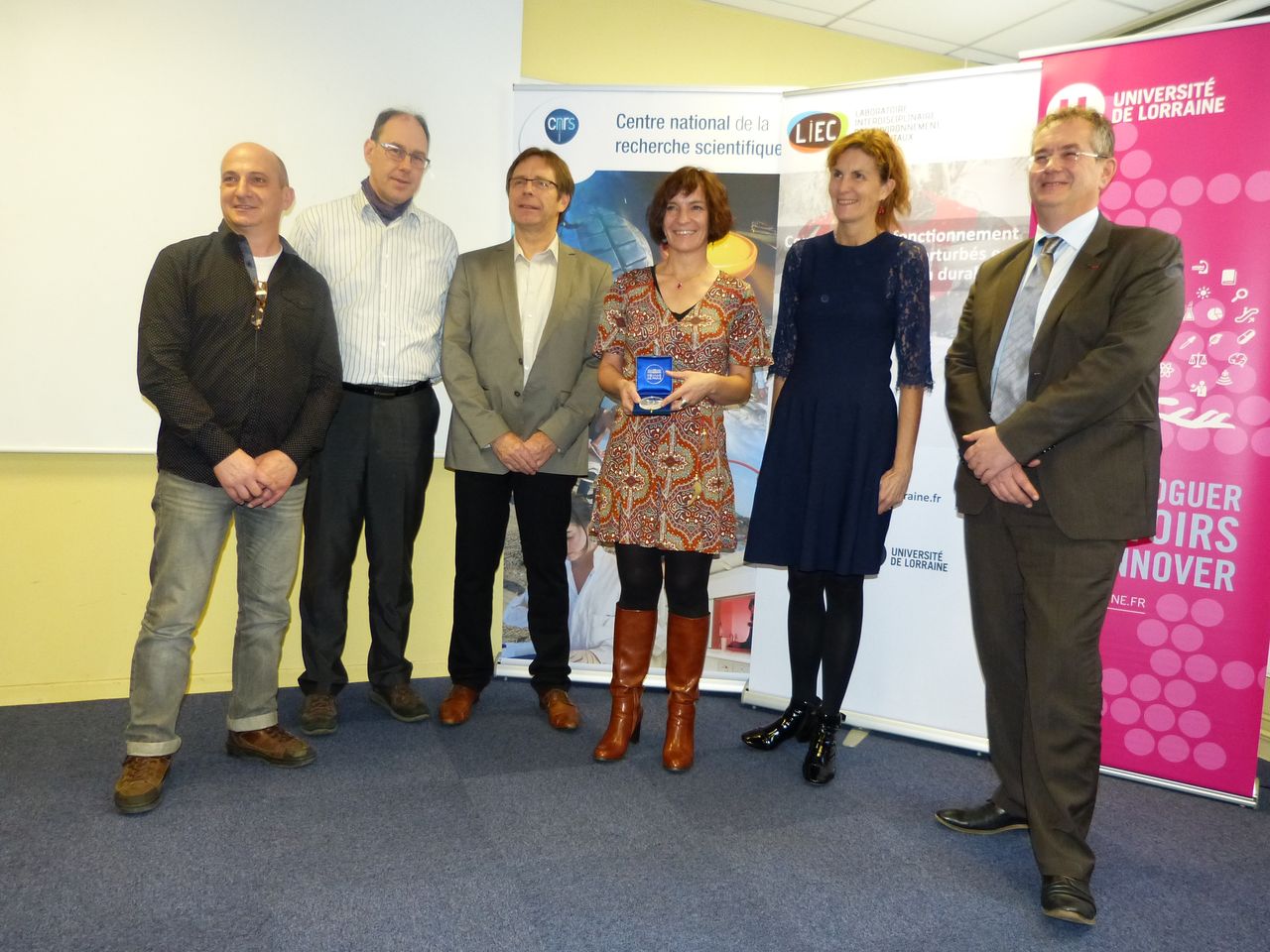 Lors de la cérémonie qui s’est déroulée le 29 novembre 2016 au LIEC, la médaille lui a été remise par Muriel Sinanidès, déléguée régionale Centre-Est du CNRS et Nicolas Arnaud, directeur adjoint scientifique de l’institut national des sciences de l’Univers – INSU du CNRS, en présence de Sylvain Lamare, directeur adjoint scientifique de l’institut écologie et environnement – INEE du CNRS, Fabien Thomas, directeur du LIEC et Pierre Mutzenhardt, président de l’Université de Lorraine.
