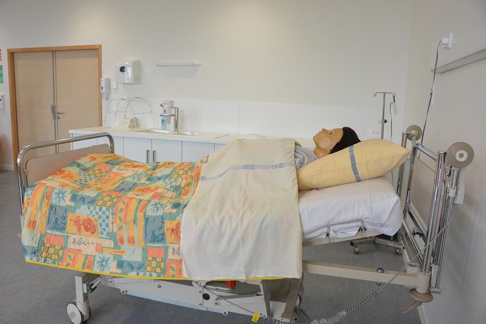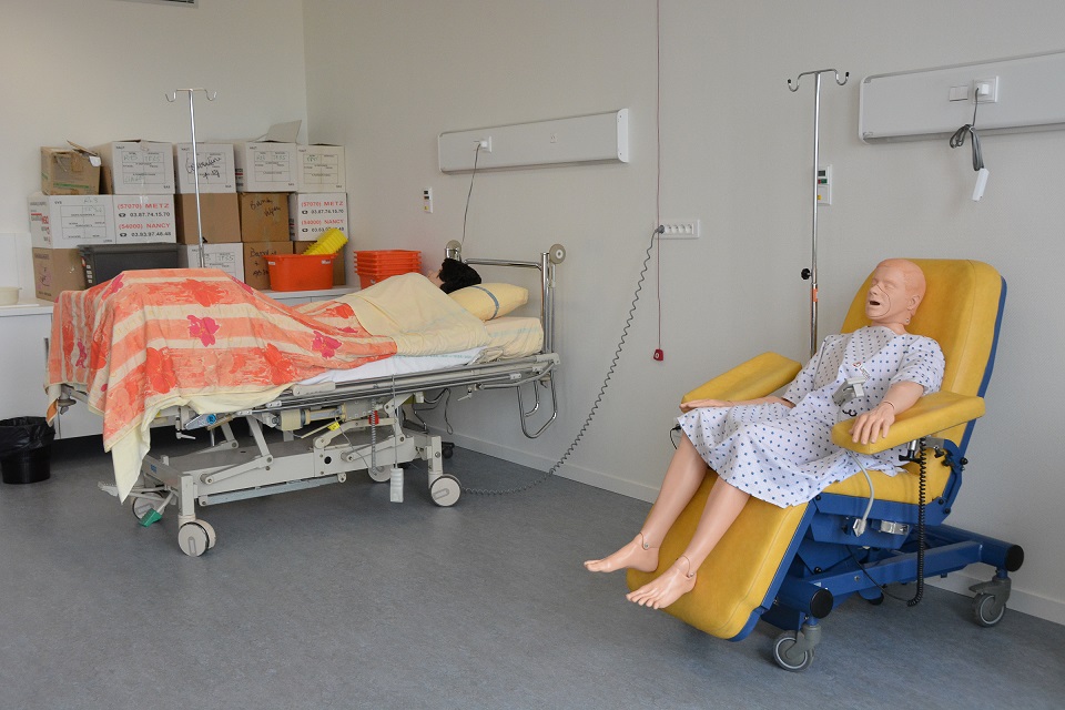 Mannequins, chariots d’urgence, lits d’hôpitaux,… en un instant nous nous sommes crus dans un service de soin. L’intérêt de ces salles de TP aussi proche du réel est de permettre à l’étudiant de s’habituer aux matériels ainsi qu’à son environnement. Mais il s’agit aussi, et surtout, de l’entraîner à pratiquer des soins aussi bien sur des nourrissons, des enfants, que des adultes.
