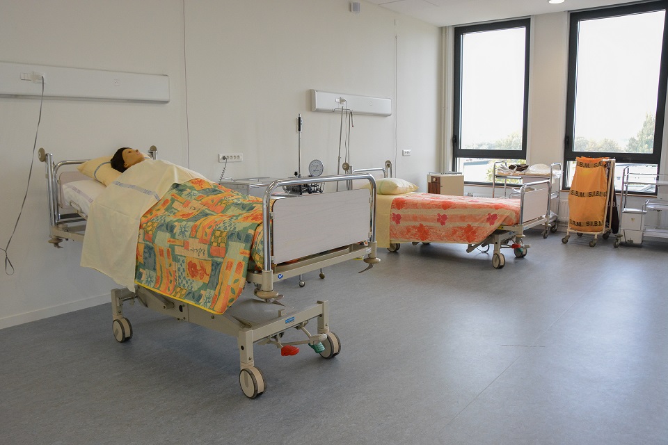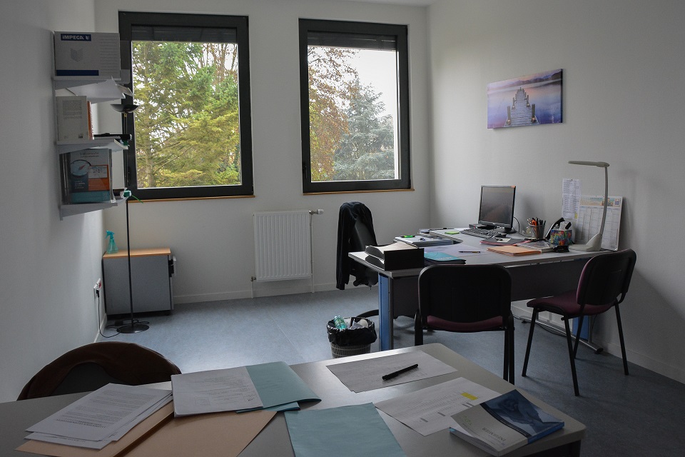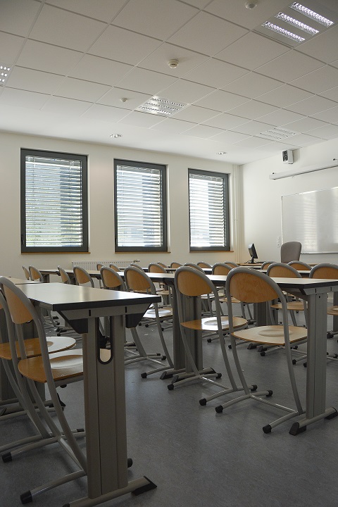 Notre premier constat lors de notre visite est l’agencement du bâtiment : étages et salles de cours ont la même configuration et le même équipement. « Toutes nos salles sont standardisées car nous avons souhaité une mutualisation des moyens et des connaissances due à nos différentes formations en santé et paramédicale au sein du bâtiment» nous explique Madame Schons, directrice des soins et coordinatrice des écoles en santé.