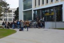 C’est sous un ciel dégagé se reflétant dans la baie vitrée de l’entrée, que le bâtiment Simone Veil nous accueille. Barrières, échafaudages, camions et ouvriers ont disparu laissant la place aux étudiants déambulant dans les nouveaux couloirs du bâtiment ou attendant patiemment à l’entrée que leurs cours débutent.