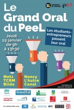 Le 19 janvier 2017 se tiendra l’événement phare du début d’année en ce qui concerne l’entrepreneuriat étudiant : le Grand Oral du PeeL ! Celui-ci se tiendra simultanément à l’Autre Canal à Nancy et à TCRM Blida à Metz à partir de 9h.