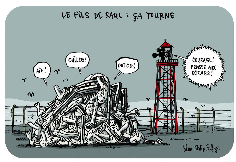 Un an après, Rémi Malingrëy a porté un regard graphique et personnel sur cet article, qui avait sans grand mérite prophétisé la récolte de statuettes obtenue par le film de Laszlo Nemes. Hollywood a en effet couronné le film bien-pensant envoyé par la Hongrie raciste, antisémite, islamophobe, anti-roms et anti-migrants de Viktor Orban, qui a remporté un succès mondial sur le dos des victimes du national-socialisme. De paradoxe en paradoxe, comment ne pas faire le lien avec le triomphe un an plus tard de Donald Trump et au-delà, la fortune électorale de tous les populistes xénophobes qui se font élire sur des lignes anti-establishement en attirant le vote populaire et l'adhésion des déclassés - et qui sont invariablement des milliardaires ? Salut lorrain à Rémi Malingrëy…