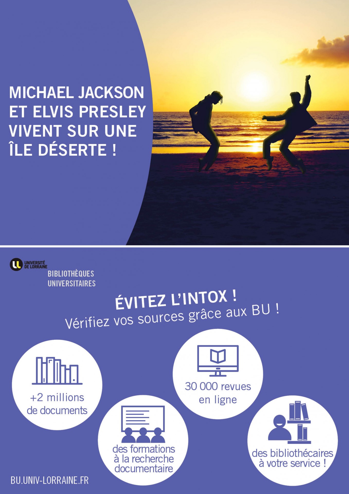 Les visuels complets avec la mention « Evitez l’intox ! Vérifiez vos sources grâce aux BU ! » ont ensuite été diffusés le mardi 31 janvier ainsi que des flyers papier disponibles dans les 27 BU du réseau.