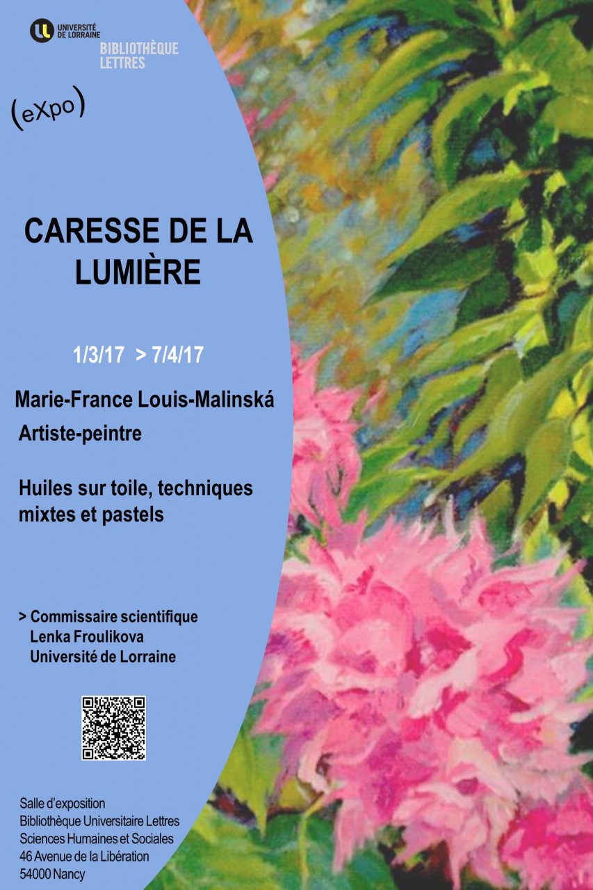 Lenka Froulikova, Commissaire scientifique, propose l'exposition Caresse de la lumière lors des Semaines de la culture tchèque et tchécoslovaque du 1er mars 2017 au 7 avril 2017 à la Bibliothèque Universitaire située sur le Campus Lettres et Sciences Humaines de Nancy.