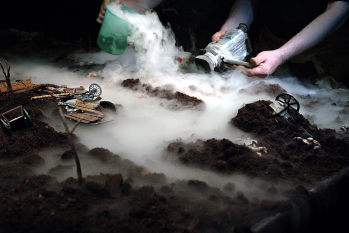 Envoyé à Verdun comme tant d’autres poilus, Prosper a laissé comme traces de son existence quelques simples lettres envoyées à sa mère, témoignage parmi d’autres de la vie au front. Armés d’une boîte à outils regorgeant de matériaux les plus divers, les membres du collectif néerlandais Hotel Modern recréent la guerre des tranchées avec une inventivité et un savoir-faire étonnants, nous livrant une approche sensible et décalée de l’Histoire.