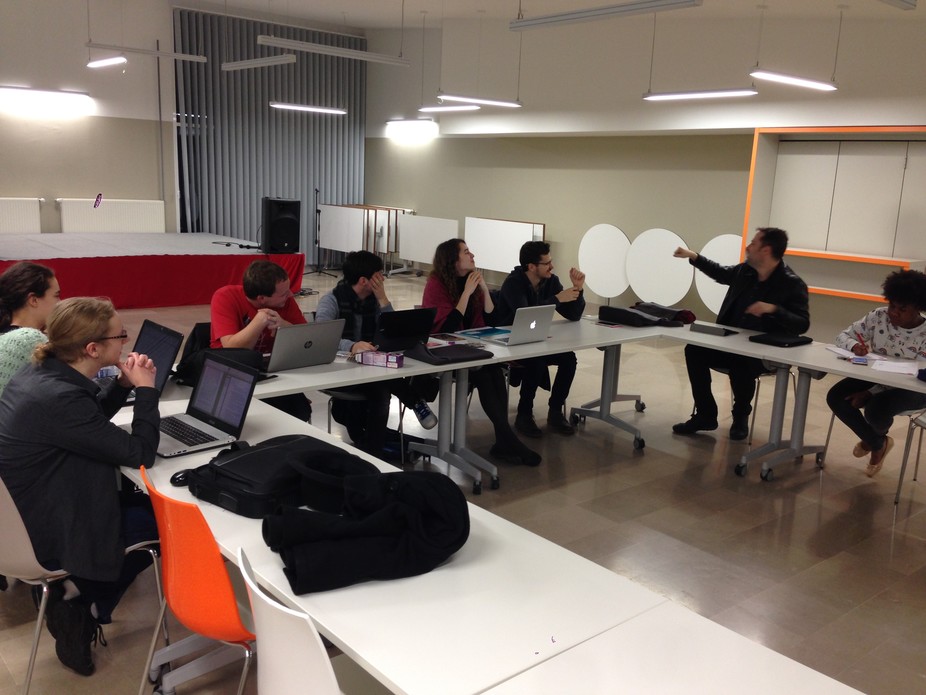 Créer du lien, partager ensemble ses envies, ses tentatives textuelles, sa création relève d’un désir commun qui regroupe trois jours par semaine Jérémy Fel et des étudiants venus d’univers différents (gestion, lettres, informatique, médecine…) qui se sont engagés à produire une nouvelle à l’issue de la résidence.