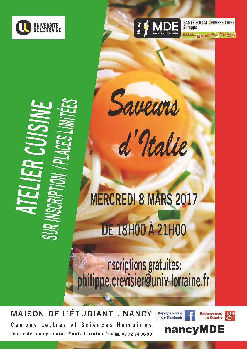 Atelier Cuisine Gratuit - Maison de l'étudiant NANCY - Santé-social Sumpps Université de Lorraine