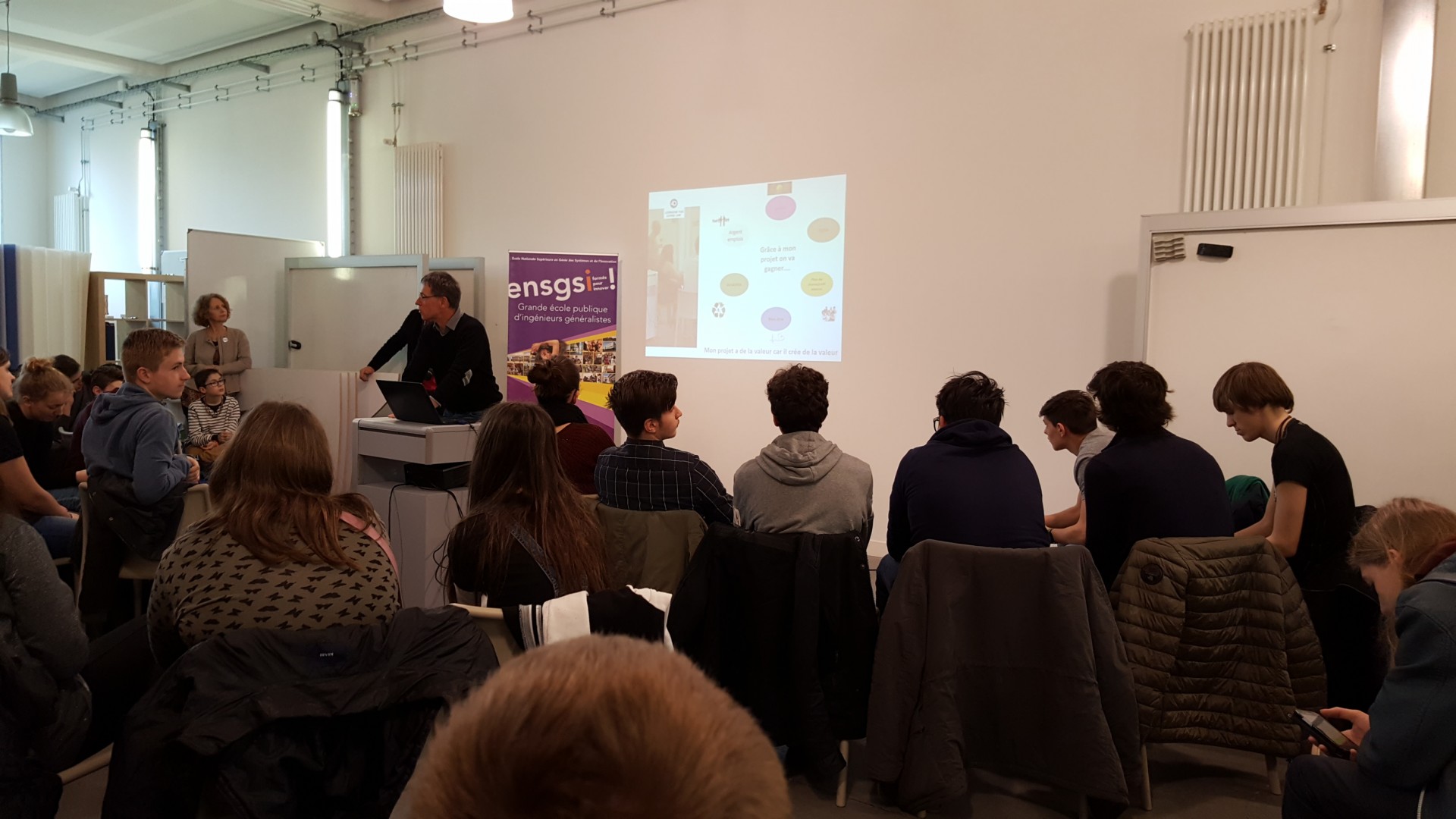 C'est dans ce cadre que 17 élèves de seconde option Création Innovation Technologique, 16 élèves de 1ère S option Sciences physique et mathématique du lycée Charles Jully de Saint Avold (57) ainsi 12 élèves du collège Alexandre Dreux de Folschviller ont eu l’opportunité exceptionnelle de venir découvrir la plateforme de l’Université de Lorraine dédiée à l'innovation avec une séance de créativité collective suivie d'échanges avec des étudiants et des enseignants de l'ENSGSI et de l'Equipe de Recherche sur les Processus Innovatifs, afin de mieux comprendre le métier d'ingénieur en innovation et toutes les perspectives qui s'offrent à eux.