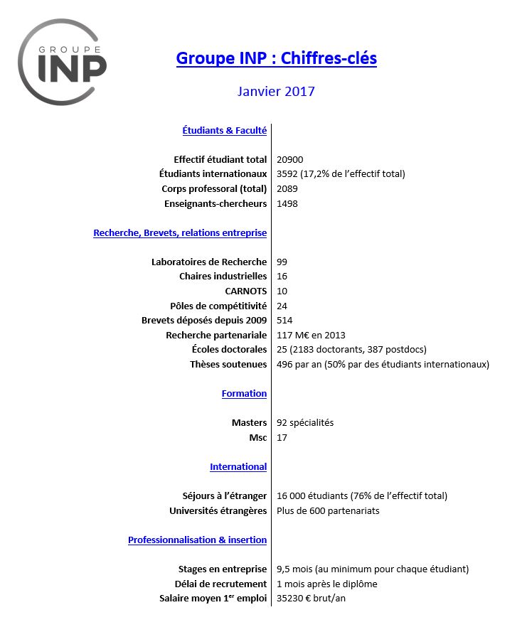 Le Groupe INP rassemble 21.000 élèves-ingénieurs, 30 écoles et 4 INP (Bordeaux, Grenoble, Lorraine et Toulouse). L’une de ses missions est de développer les synergies entre écoles au bénéfice des étudiants.