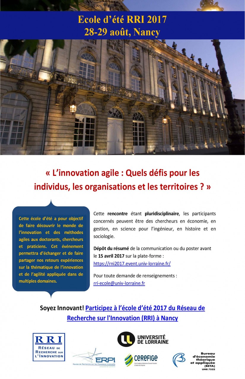 Soyez Innovant ! Participez à l’école d’été 2017 du Réseau de Recherche sur l'Innovation (RRI) à Nancy
