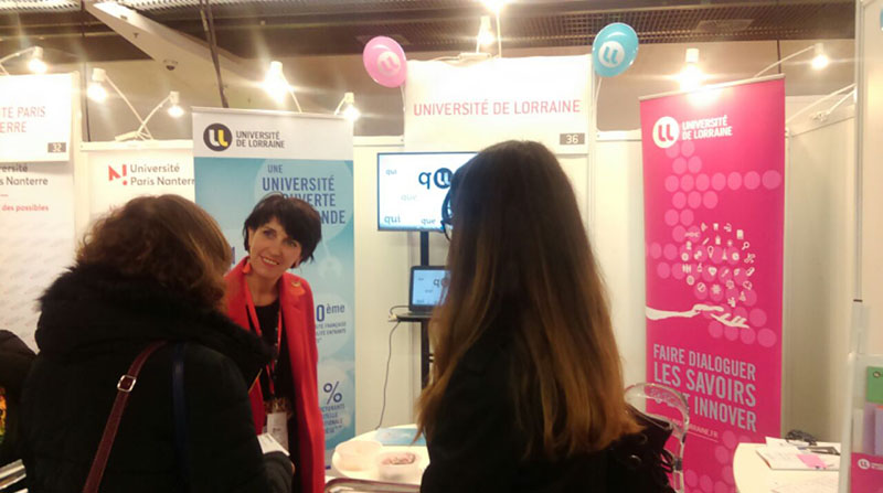 L'Université de Lorraine était présente au salon RUE 2017, le salon de l'enseignement supérieur et de la recherche, les 16 et 17 mars à Paris. La thématique principale cette année était "La France : campus du monde". Pierre Mutzenhardt, président de l'Université de Lorraine a participé à plusieurs tables rondes et conférences. Il a notamment échangé sur les relations avec le Maroc lors d'un focus avec Noureddine Mouaddib, président de l'Université internationale de Rabat et Abdallah Ougazzaden, directeur de Georgia Tech Lorraine, ces 2 établissements étant des partenaires privilégiés de l'Université de Lorraine. Karl Tombre, vice-président en charge des relations intenationales, a quant à lui, donné une conférence au cours de laquelle il a présenté l'Université de la Grande Région.