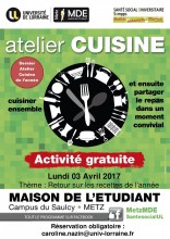 La diététicienne du SUMPPS et la Maison de l'étudiant Metz de l'Université de Lorraine propose aux étudiants un atelier de cuisine : apprendre à manger malin, pas cher et équilibré