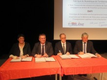 Le 21 mars dernier, le préfet de Meurthe-et-Moselle, le député-maire de Tomblaine, le président de l’Université de Lorraine et la directrice de l’IUT Nancy-Brabois se sont réunis pour signer une convention de partenariat d’un genre expérimental puisqu’il s’agit de former et de recruter 12 jeunes très éloignés de l’emploi et en situation de rupture scolaire dans le domaine du Déploiement de réseaux Fibres optiques (DéFi).