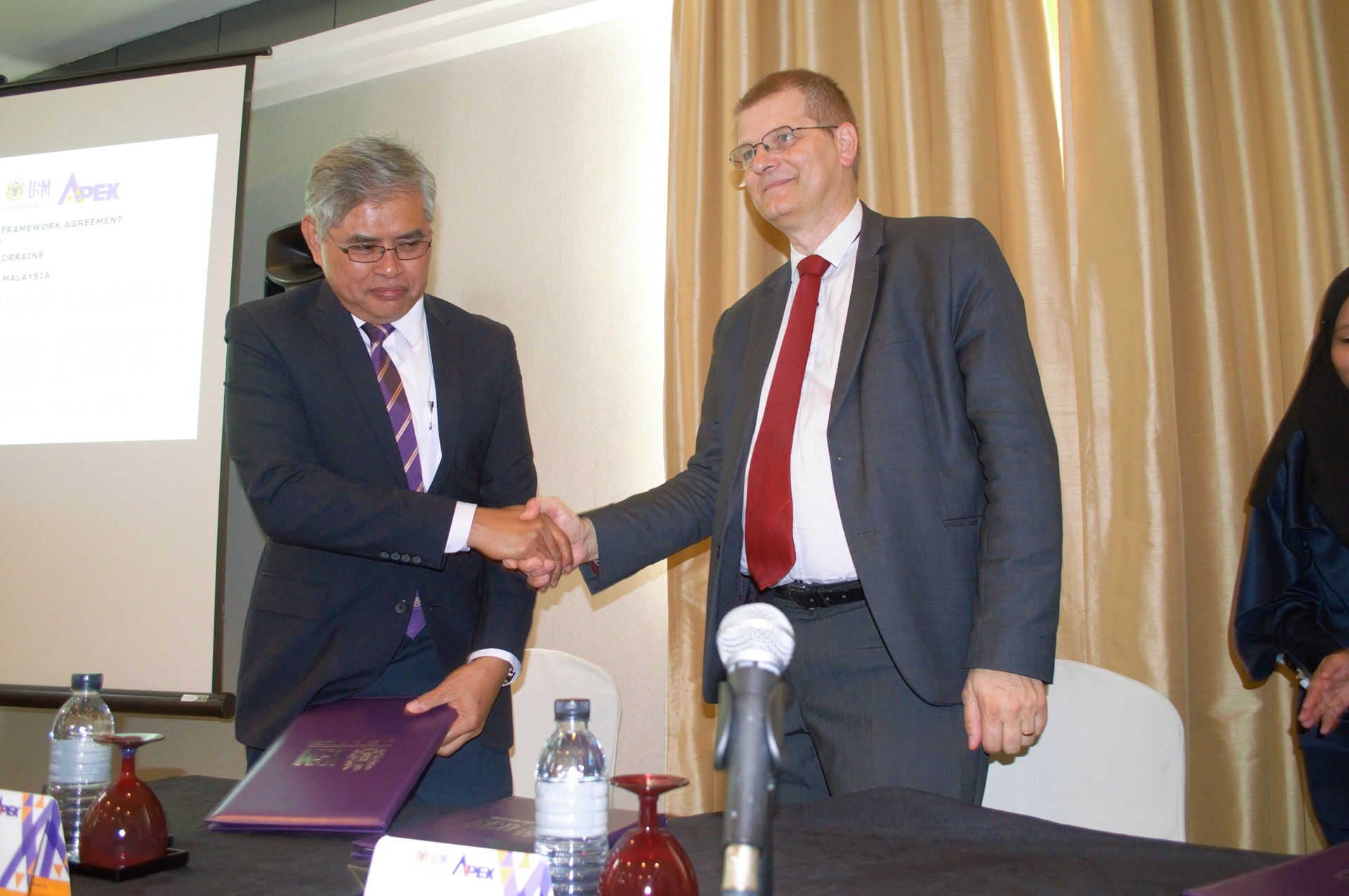 Après de nombreux échanges, visites, thèses en cotutelles, et plusieurs colloques conjoints -le dernier ayant eu lieu à Penang en janvier 2017 et ayant réuni presque 60 chercheurs des deux établissements-, les deux universités ont décidé de renforcer et étendre leur partenariat scientifique en développant davantage les collaborations de recherche, les échanges d'étudiants et de personnels, les thèses et les programmes de recherche communs dans les domaines suivants : sciences médicales et biologiques, y compris les sciences pharmaceutiques et dentaires ; Chimie et génie des procédés ; Technologies industrielles ; Sciences et ingénierie des matériaux ; Métallurgie ; Ingénierie des ressources minérales ; Sciences et ingénierie de l'environnement.