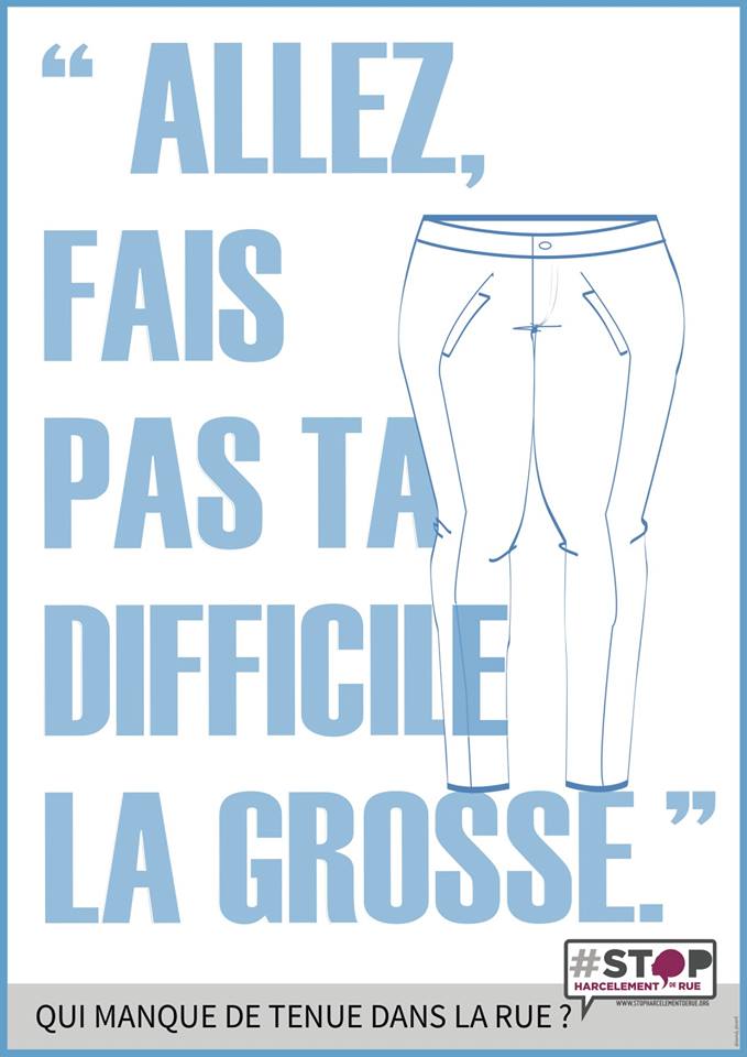 Et 5 ans après le documentaire de Sophie Peeters, après cette prise de conscience, où en est-on aujourd’hui, en France ? Cette forme de harcèlement, difficile à encadrer juridiquement et donc à condamner, ne fait pour le moment pas l’objet de textes de lois. Pourtant, les campagnes pour lutter contre le harcèlement dans l’espace public et notamment dans les transports en commun se font de plus en plus nombreuses. A l’occasion de la Semaine Internationale de Lutte Contre le Harcèlement De Rue, vous êtes notamment invités à suivre cette campagne lancée par le collectif Stop Harcèlement de Rue, qui publie tout au long de la semaine des affiches portant sur ce sujet, comme celle jointe à cet article.