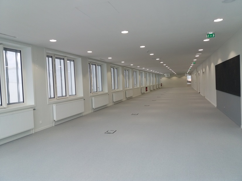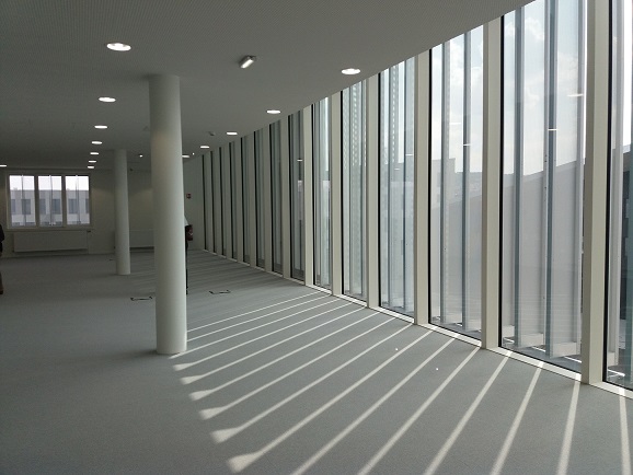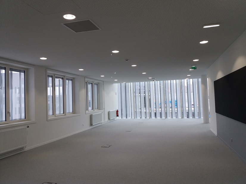 Accessible depuis la Galerie commune à la tranche bâtimentaire 3, la médiathèque se répartit sur 2 plateaux en R+2 et R+3, couverte par un réseau WIFI :