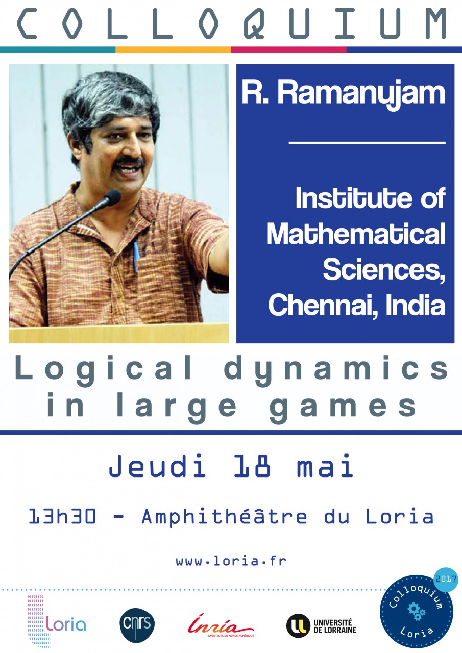 Nous accueillerons R. Ramanujam, professeur à l’IMSc – Institute of Mathematical Sciences de Chennai, en Inde. Après avoir obtenu un doctorat en informatique théorique au Tata Institute of Fundamental Research de Mumbai, R. Ramanujam a effectué son post-doctorat à New York. Ses axes de recherche majeurs sont la logique mathématique et philosophique et leurs applications à la théorie des systèmes distribués, la théorie du jeu et les protocoles de sécurité. Il fait partie du comité de rédaction de l’ACM Transactions on Computational Logic, et il est très impliqué dans l’Indian Association for Research in Computing Science et dans l’Association for Logic in India.