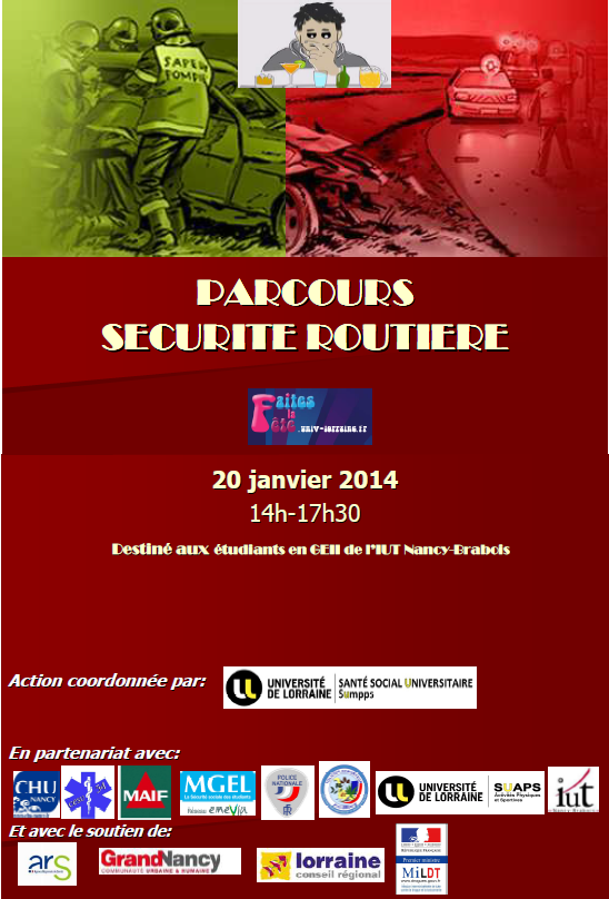 Dans le cadre de son label "Faites la fête", le SUMPPS (Service universitaire de médecine préventive et de promotion de la santé) organise le lundi 20 janvier 2014 de 14h à 17h à l'IUT Nancy Brabois