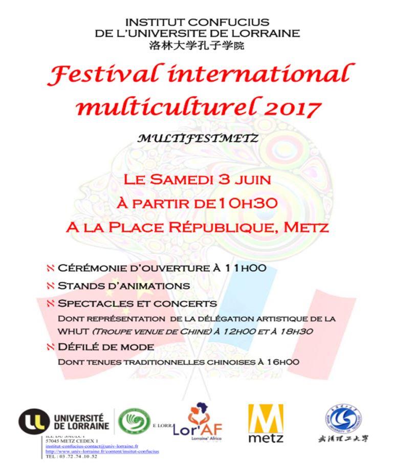 Le Samedi 3 juin dernier, l’Institut Confucius de l’Université de Lorraine a participé au Festival international multiculturel 2017 en partenariat avec la Ville de Metz et Lorraine Afrique.