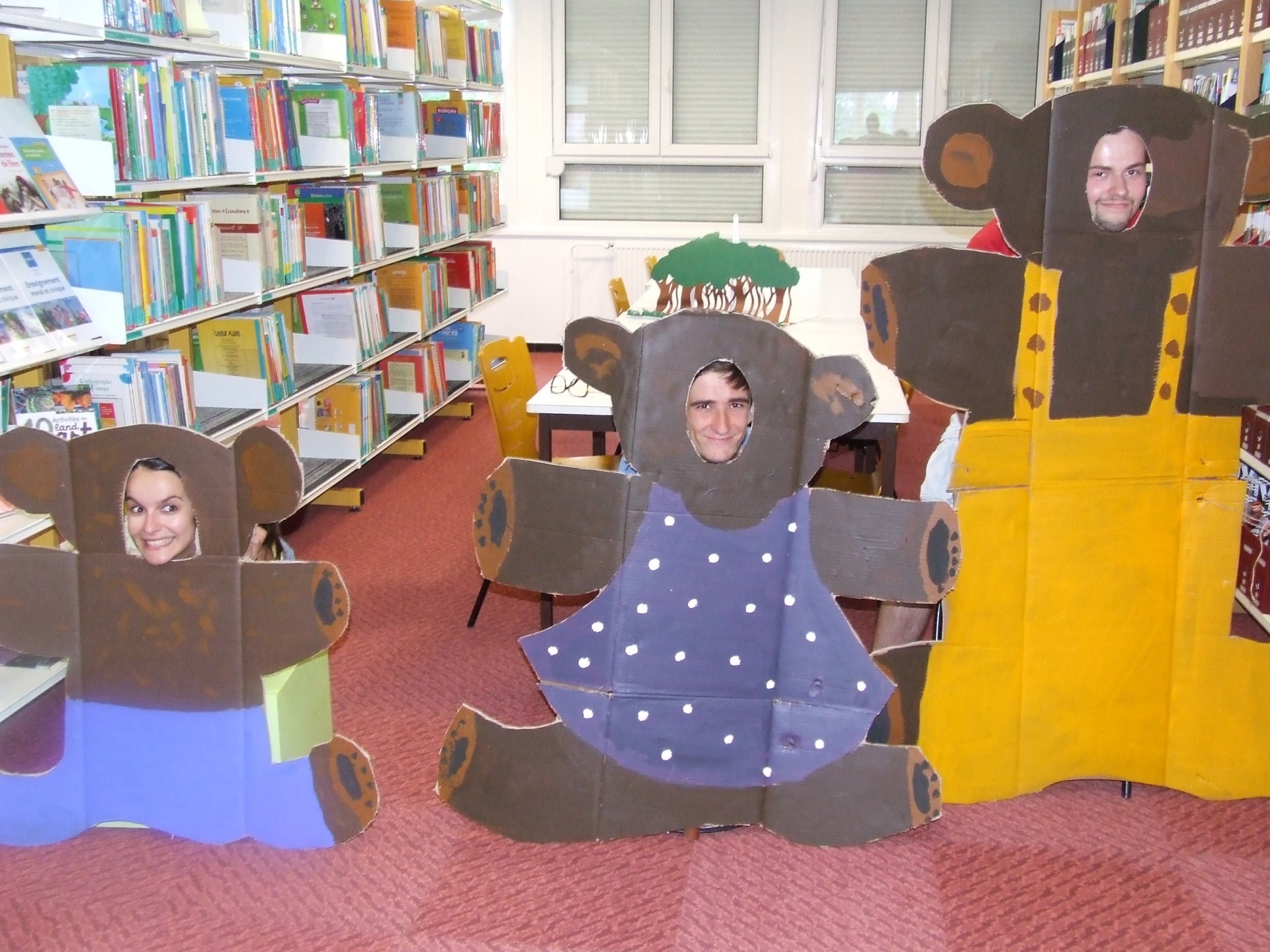 Après l’intervention de Judith Milligan, comédienne de l’association « Langues en Scène » et plusieurs mois d’expérimentation dans leur classe respective, les enseignants stagiaires ont partagé leur nouvelle compétence : raconter une histoire en anglais ou en allemand en théâtralisant le récit. Ainsi, le 2 juin 2017, trois classes de CP et CE1 de l'école Jean-Macé ont été accueillies à la BU ESPÉ du site d’Épinal où elles ont eu le privilège de découvrir deux contes : Goldillocks and the three bears et We're going on a bear hunt (Boucle d’or et les trois ours et La chasse à l’ours).