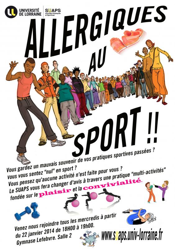 Le SUAPS vous fera changer d'avis à travers une pratique "multi-activités" fondée sur le plaisir et la convivialité. Venez nous rejoindre tous les mercredis à partir du 22 janvier 2014 de 18H00 à 19h00.