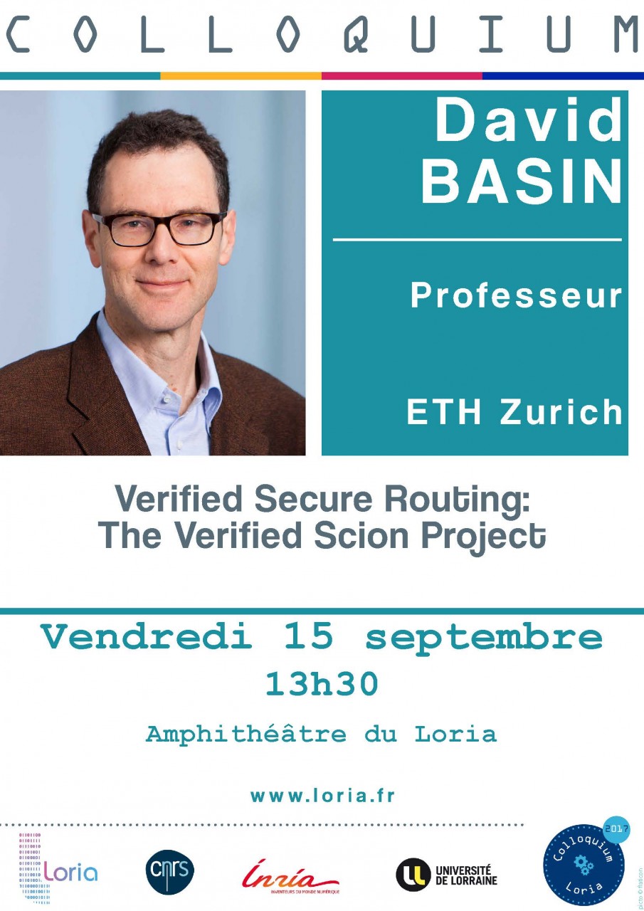 Le colloquium du Loria reprend le 15 septembre ! À cette occasion, nous accueillerons David Basin, professeur à ETH Zurich et responsable du “Information Security Group” avec un exposé intitulé “Verified Secure Routing: The Verified Scion Project”.