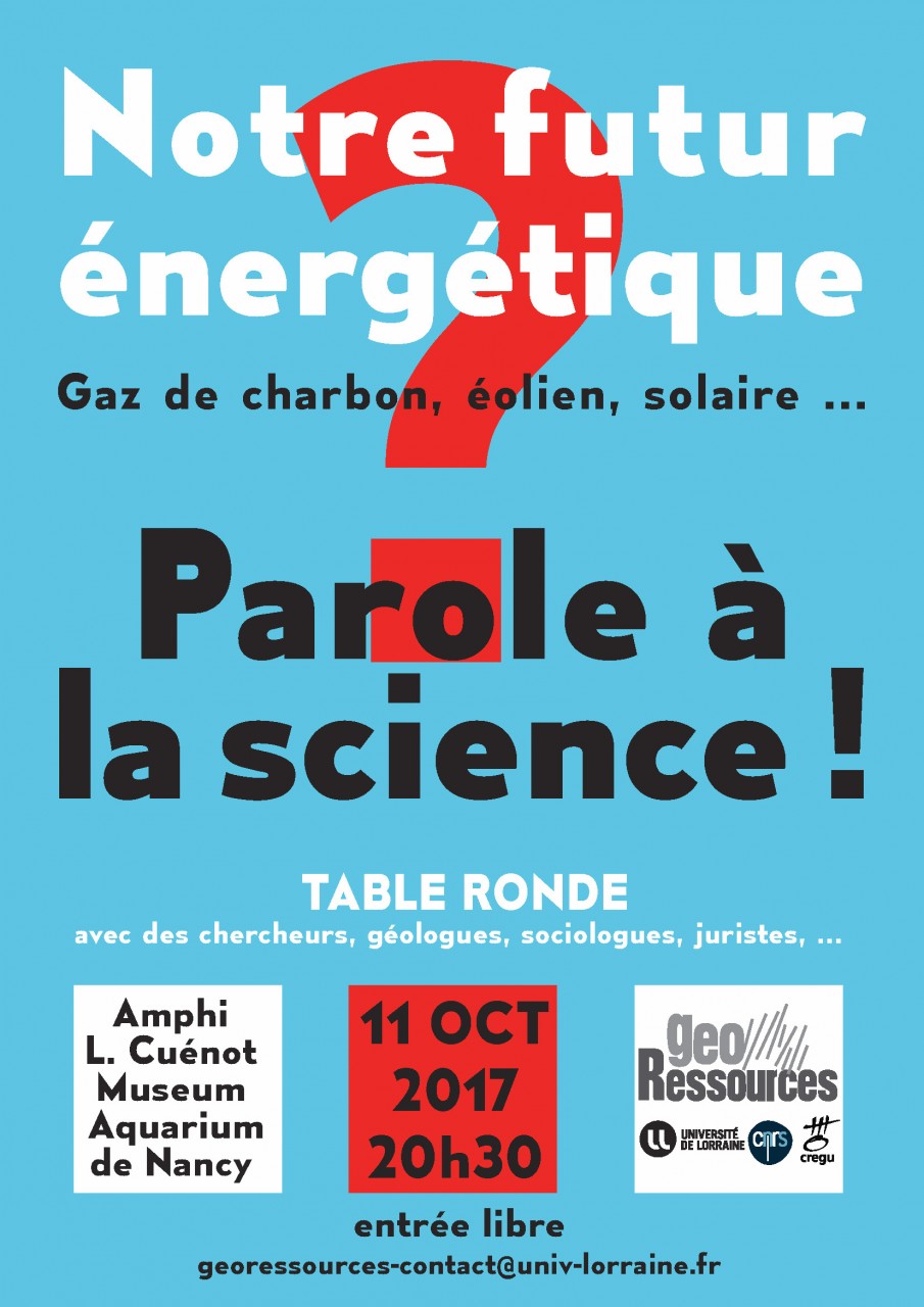 L'occasion sera donnée à des chercheurs géologues, sociologues, juristes, de laboratoires de l'Université de Lorraine*, de donner un éclairage scientifique à la thématique de l'énergie : gaz de charbon, éolien, solaire ...