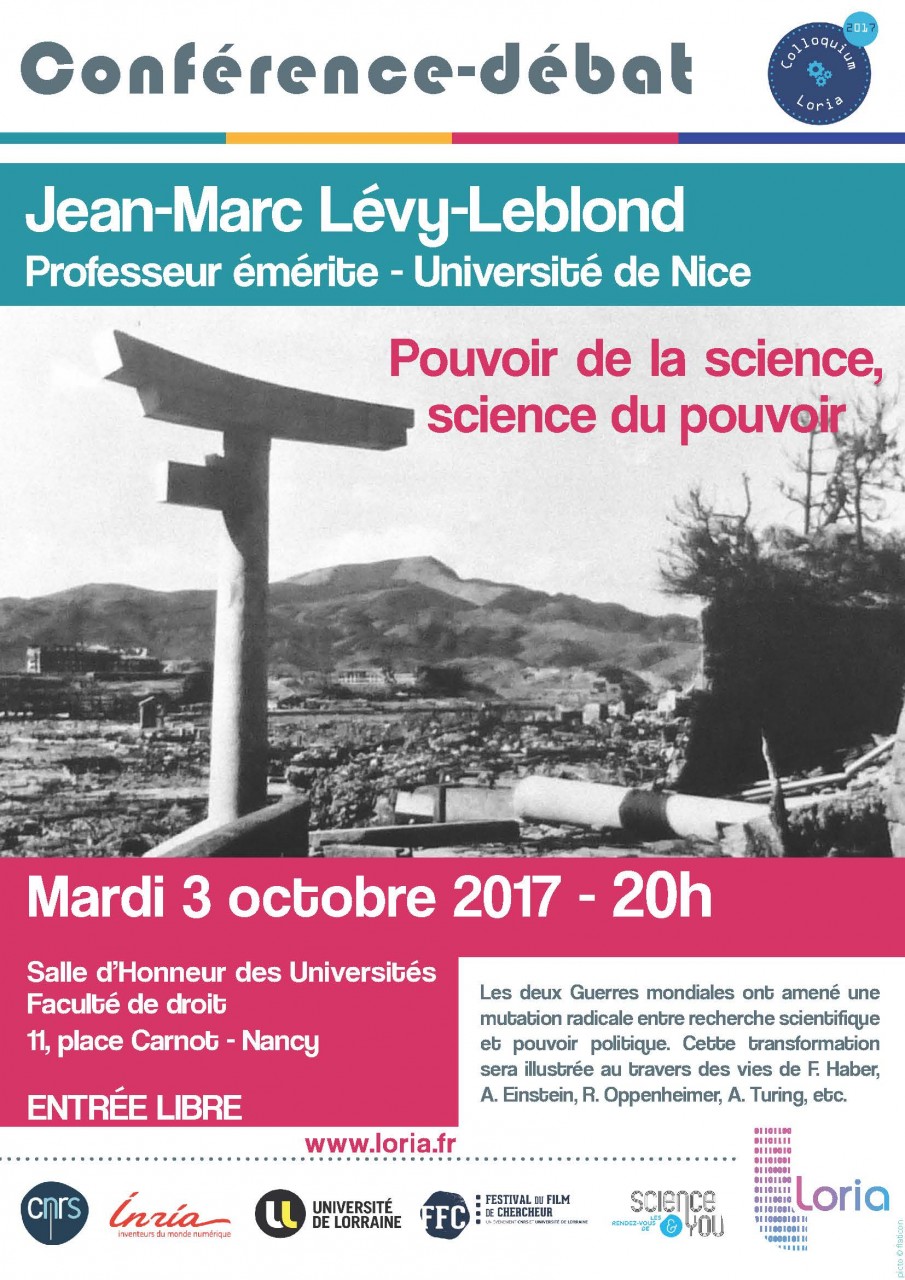 Le mardi 3 octobre à 20h, en salle d’honneur des universités, aura lieu une conférence–débat intitulée « Pouvoir de la science, science du pouvoir ». Organisée dans le cadre du colloquium 2017 du Loria, elle sera présentée par Jean-Marc Lévy-Leblond, professeur émérite de l’université de Nice, spécialiste de physique quantique mais également essayiste qui réfléchit sur la position des science dans notre temps, ou, comme il aime se décrire lui-même, « critique de sciences ».