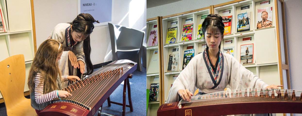 - Entractes musicales : Avec la participation des étudiants d'échanges de l'Université de Technologie de Wuhan, les passants ont pu apprécié la mélodie de l'instrument chinois le Guzheng, ainsi que celle du violon à deux cordes le Erhu. Ils ont pu également apprécié la démonstration de Taiji avec éventail et danse traditionnelle chinoise.