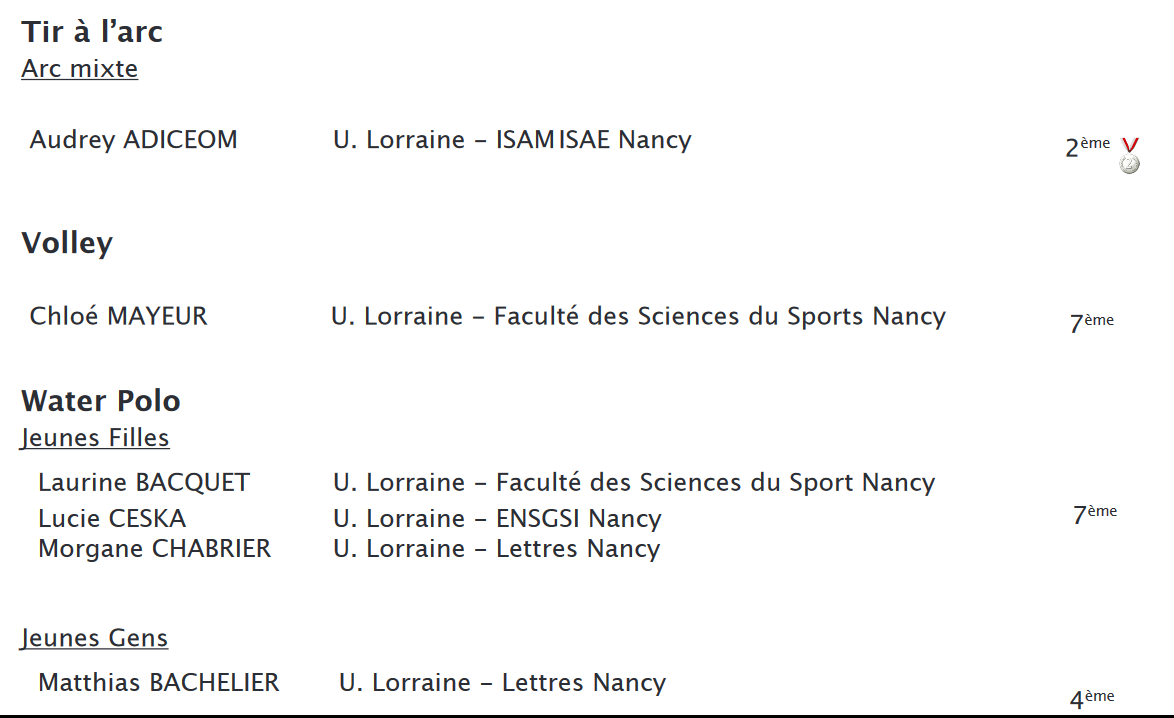 Audrey Adiceom, étudiante à l’UFR Mathématiques-Informatique, a obtenu une médaille d’argent en tir à l’arc par équipe mixte, avec son coéquipier Mathieu Jimenez de l’Université Pierre et Marie Curie aux universiades d’été.