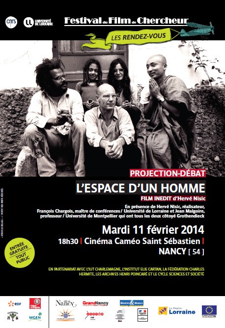 La projection sera suivi d'échanges en présence d'Hervé Nisic, réalisateur, François Chargois, maître de conférences / Université de Lorraine et Jean Malgoire, professeur / Université de Montpellier qui ont tous les deux côtoyé Grothendieck