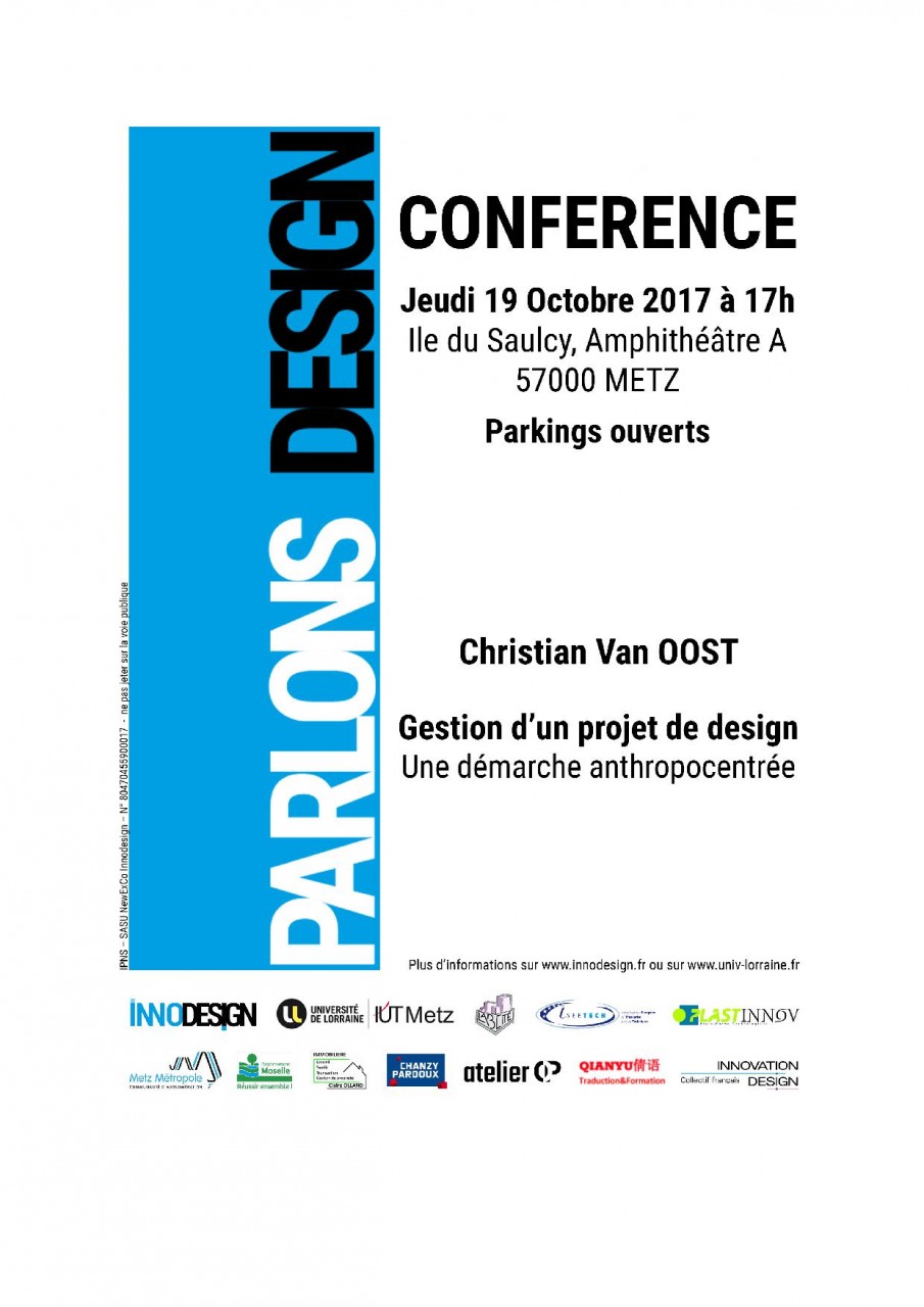 Conférence Parlons Design le jeudi 19 octobre à 17h, amphithéâtre A - IUT de Metz, Saulcy; durée 1h pour l’enregistrement, suivie d’un débat et d’un moment convivial.