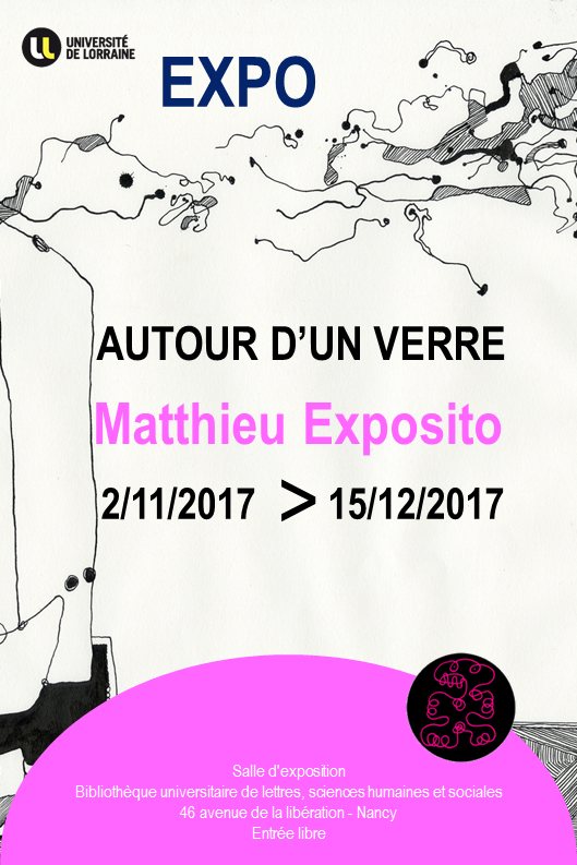 Matthieu Exposito, propose une exposition Autour d'un verre du 2 novembre 2017 au 21 décembre 2017 à la Bibliothèque universitaire de lettres, sciences humaines et sociales.