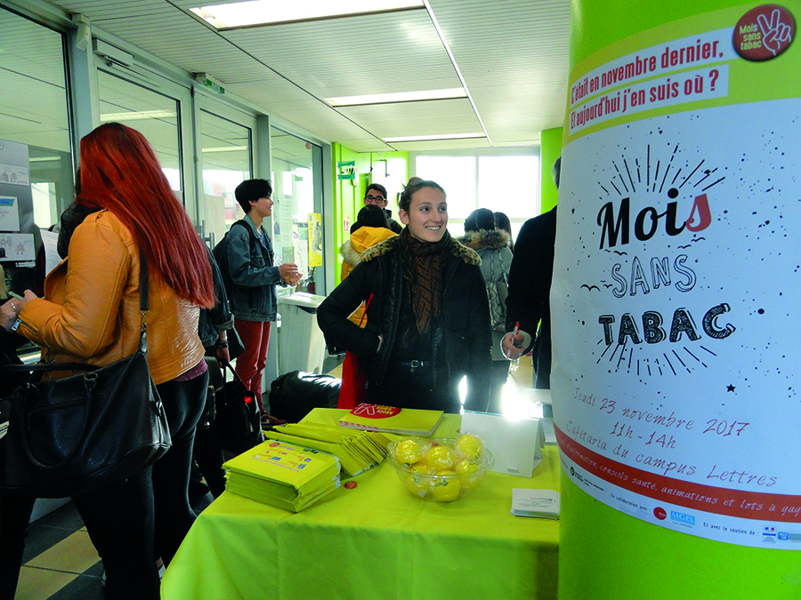 Le Service Santé Social (SUMPPS) Etudiants Lorraine Sud de l’Université de Lorraine, en partenariat avec le CROUS et la MGEL, et avec le soutien de la MILDECA et de l’ARS Grand Est, organisait une « Journée sans tabac » le jeudi 23 novembre 2017, dans le cadre du « Moi(s) sans tabac ».