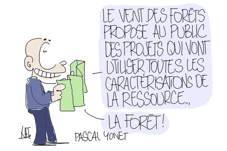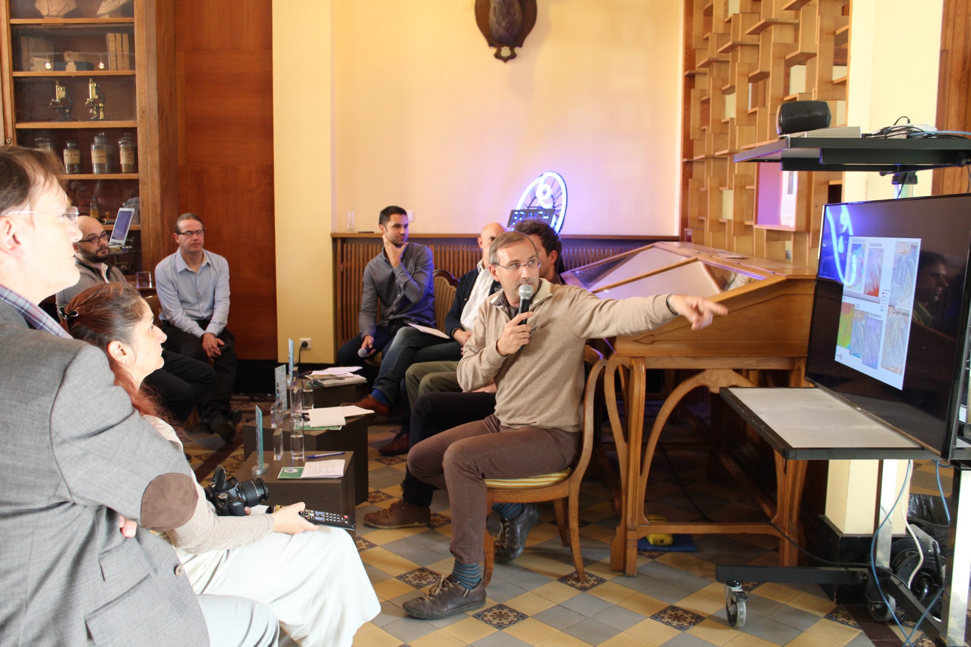 Devant un public comptant 62 personnes, l’animateur du Brunch – Sylvain Caurla, du laboratoire d’économie forestière de l’Inra – et quatre intervenants ont présenté et confronté leurs points de vue. Christian Piédallu, ingénieur de recherche à AgroParisTech, a présenté sa vision de géomaticien, pour qui l’enjeu est d’améliorer « la façon de représenter la variabilité spatiale et temporelle des facteurs écologiques » qui influent sur la production et la vulnérabilité des forêts, dans le contexte du changement climatique en cours. Antoine Colin, chef du département expertise et prestation de l’Institut national de l’information géographique et forestière (IGN), a pour sa part décrit ses missions, qui consistent à produire études, expertises et indicateurs sur la ressource forestière, la disponibilité en matière première bois et la bonne durabilité de la gestion nationale. Stéphane Godard, chargé de mission en système d’information et innovation à la direction de l’Office national des forêts (ONF), a insisté sur l’enjeu qu’il y a pour l’ONF à renforcer ses capacités à passer des données brutes recueillies sur le terrain à une information valorisable. Pascal Yonet, directeur de l’association Vent des forêts, espace d’art contemporain, a montré comment, dans le cadre du processus de création artistique, il accompagne les artistes appelés à s’emparer non seulement d’un lieu mais aussi des données qui sont générées à partir de ce dernier.