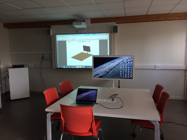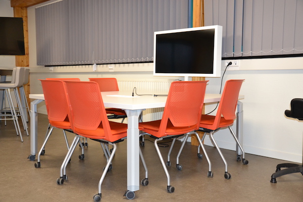 Avec une configuration multiple possible, les enseignants sont encouragés à pratiquer la classe inversée. La proximité du @Lab avec la bibliothèque facilite le lien avec la recherche documentaire de toute nature et permet l’accès à du matériel informatique via le prêt de portables.