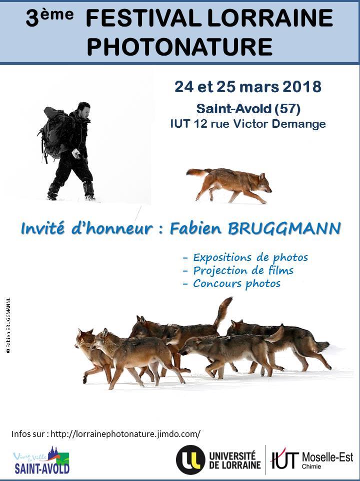 Le Festival Lorraine PhotoNature est un événement unique dans l’Est de la Lorraine rassemblant des passionnés de la photo animalière et de Nature. Ainsi une vingtaines de photographes vont présenter leurs œuvres au grand public. Cette manifestation organisée avec l’aide des étudiants du DUT Chimie, a pour but de présenter les œuvres de photographes de nature ainsi que des films et diaporamas. Un des principaux objectifs est aussi de sensibiliser le public à la protection de notre environnement et à la découverte de la biodiversité. Enfin, plus de 1000 photos envoyées par 150 participants d’une dizaine de pays, vont été jugées pour le concours photos international associé au festival. Les meilleures photos seront récompensées et présentées pendant le festival.