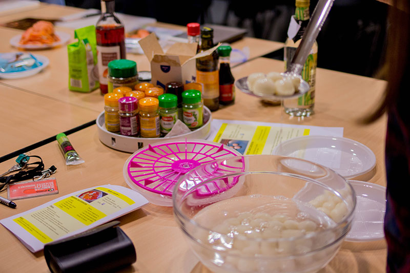 L’atelier cuisine organisé par le service santé social (SUMPPS) et la Maison de l’étudiant, a attiré plus d’une dizaine de participants le 24 janvier 2017 sur le campus lettres à Nancy. Ils ont pu s’expérimenter à la cuisine japonaise et fabriquer des sushis maison, tout en bénéficiant des conseils avisés de la diététicienne Aurélia. Un repas convivial a ensuite été partagé par les étudiants, qui sont repartis avec les recettes réalisées.