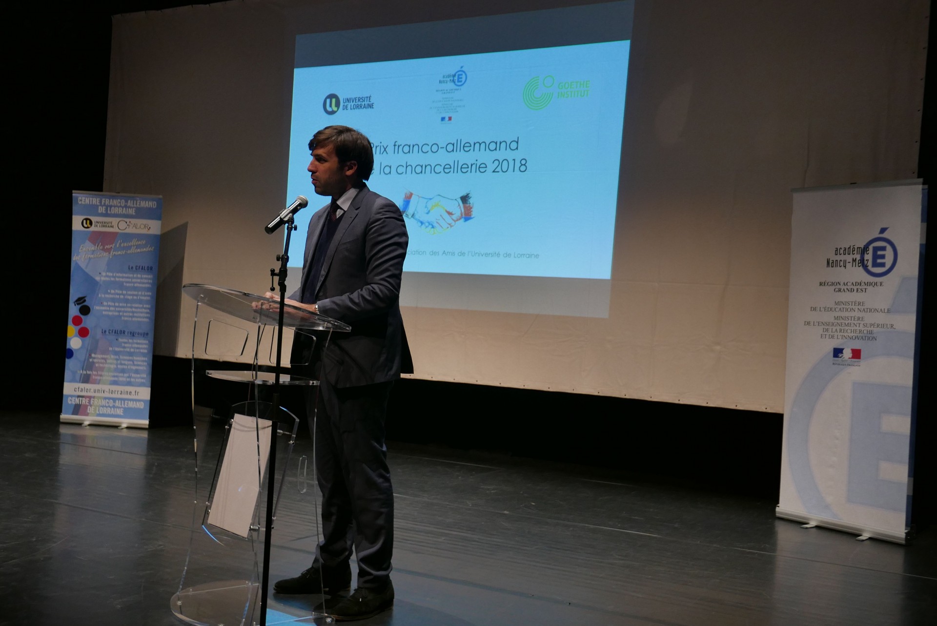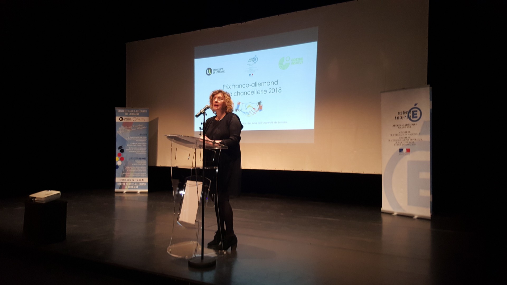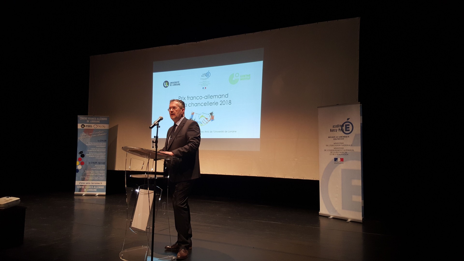 Créé en 2016, le Prix franco-allemand de la chancellerie est le fruit d’un partenariat entre l’académie de Nancy-Metz, l’Université de Lorraine, le Goethe-Institut. Il vise à souligner une relation franco-allemande fondée sur l’amitié, se développant dans la durée, avec la responsabilité d’agir pour un avenir européen.