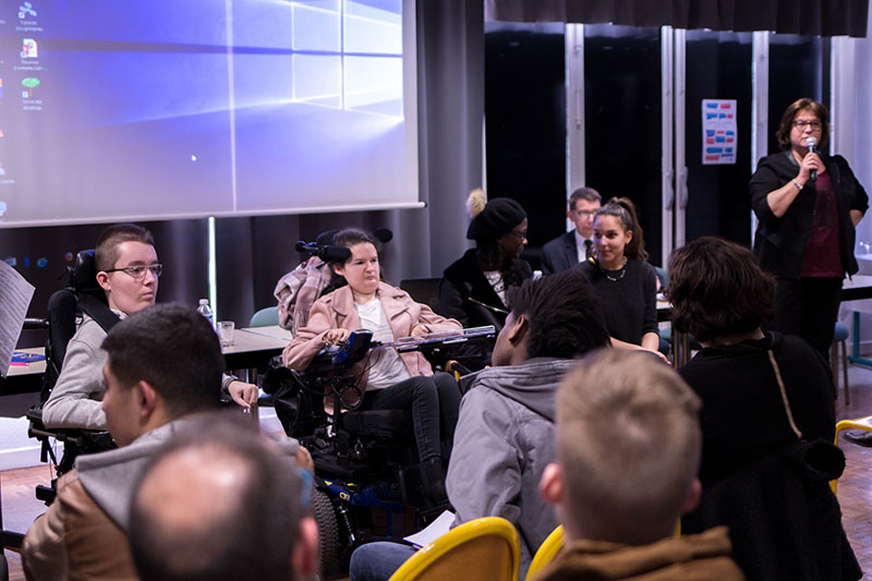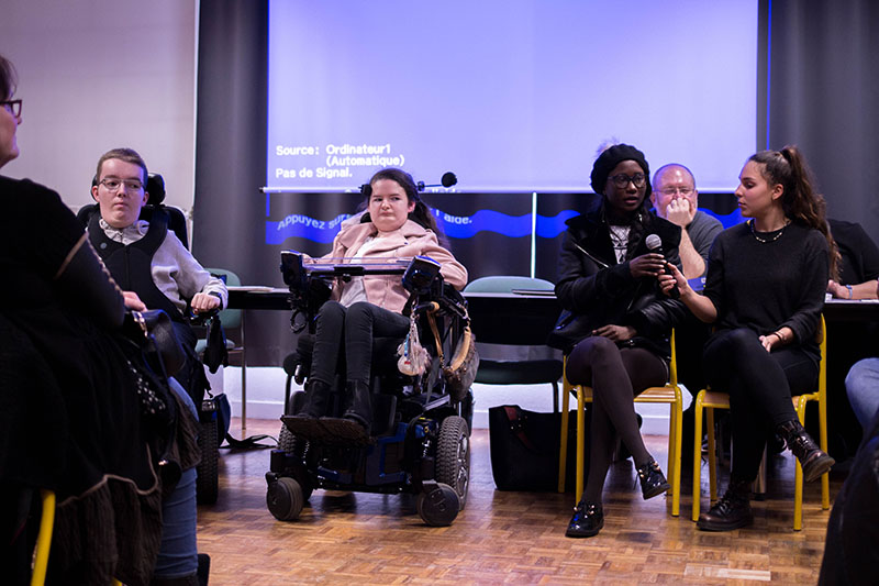 Quatre étudiants ont décrit leur parcours. Au-delà des dispositifs d’accompagnement dont ils ont pu bénéficier, ils ont démontré que la situation de handicap n’empêche pas d’envisager une filière qui les motive, mais n’évite pas non plus les hésitations, les ajustements de parcours et la nécessaire prise d’autonomie. Avec les même préoccupations que tout jeune qui entre dans l’âge adulte, apprend à affirmer ses choix et à tracer son avenir professionnel, les témoins nous ont prouvé qu’avec une bonne anticipation et de la communication, avec leur chargé d’accueil, avec les autres, leur intégration à l’université s’est parfaitement réalisée.