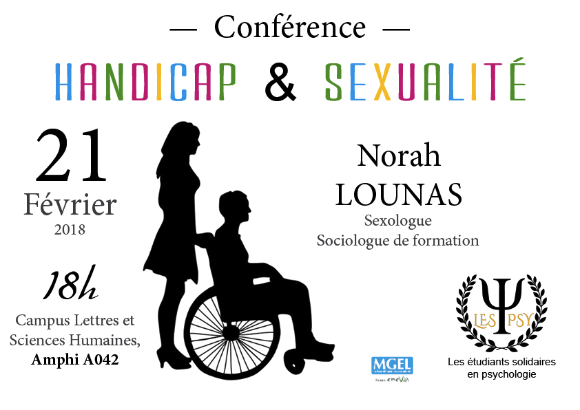 Norah Lounas, sociologue de formation, sexologue et dirigeante de son propre organisme de formation nous présentera de quelles manières elle aborde les questions de vie sexuelle et affective en institution ou à son cabinet. Elle nous présentera les outils (planches, films, supports audio, etc…) qu’elle utilise pour améliorer la prise en charge sexuelle des personnes handicapées, mentales ou moteurs, mineures ou majeures, placées ou non. Puis elle échangera avec la salle, elle nous promets un échange riche et plein d’espoir.