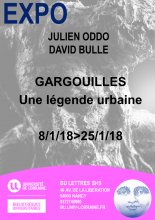 Julien Oddo et David Bulle proposent une exposition Gargouilles - Une légende urbaine du 8 janvier 2018 au 27 janvier 2018 à la Bibliothèque universitaire de lettres, sciences humaines et sociales. L'artiste présente des photographies noir et blanc réalisées à partir d'un modèle vivant.