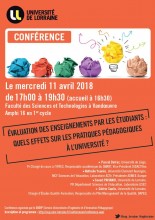 Le mercredi 11 avril 2018, de 17h à 19h30 (accueil à 16h30)Faculté des Sciences et Technologies, Vandœuvre,
