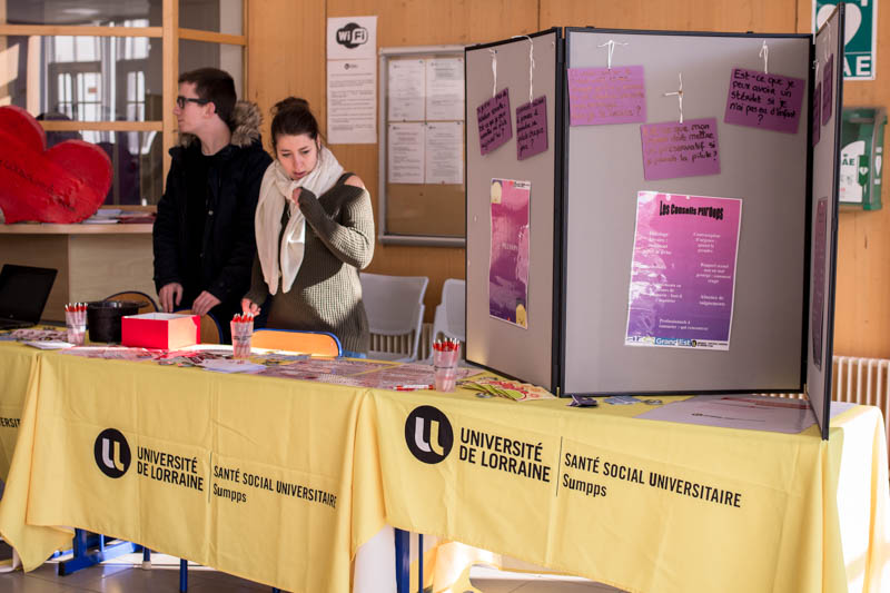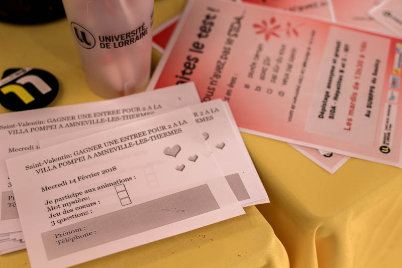 La Saint Valentin, c’est l’occasion de trouver ou de consolider son amour, et les questions qui lui sont liées sont nombreuses. Dans le hall des UFR Arts Lettres et Langues et Science Humaines et Sociales sur le campus du Saulcy, les étudiants relais du service Santé-Social (SUMPPS) ont proposé des activités pour répondre aux interrogations des étudiants sur la contraception.