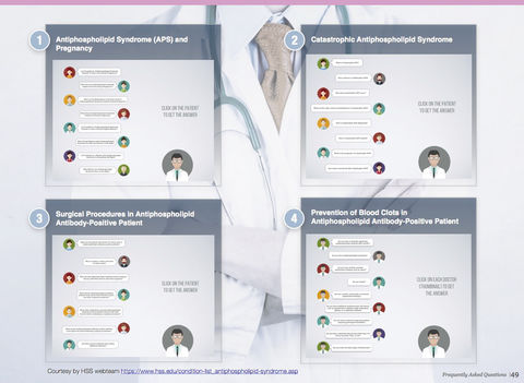 - Présentation des résultats de l’étude pédagogique : http://acrabstracts.org/abstract/impact-of-antiphospholipid-syndrome-ibook-on-medical-students-improvement-of-knowledge-an-international-randomized-controlled-experimental-study/