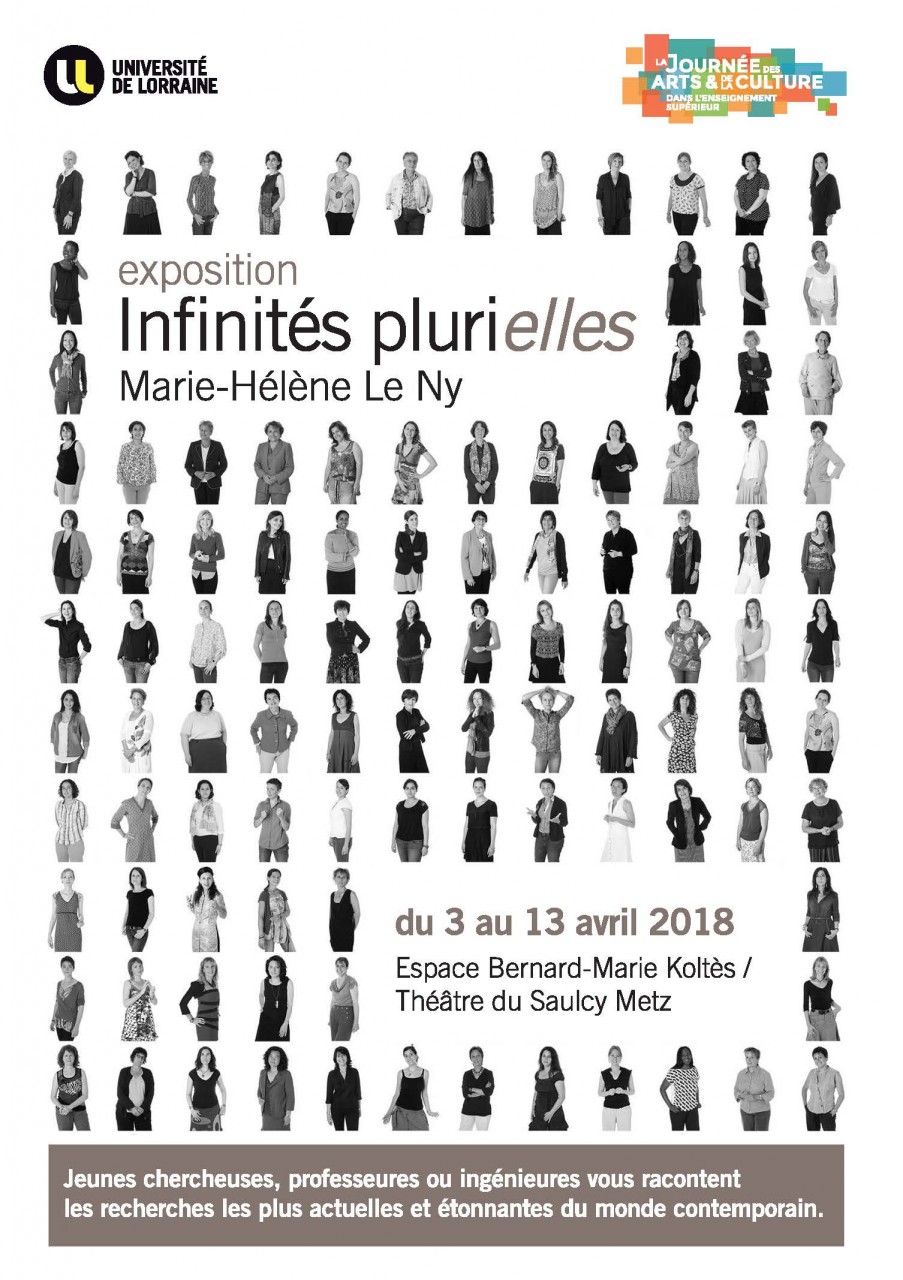 Commandée par le ministère de l’Enseignement supérieur, de la Recherche et de l’Innovation, l'exposition itinérante Infinités Pluriellles, de Marie-Hélène Le Ny, présente 145 femmes scientifiques. De la chimie à l'astrophysique en passant par l'histoire, la philosophie ou l'aéronautique, jeunes chercheuses, professeures ou ingénieures racontent les recherches les plus étonnantes, entraînant le public avec passion dans les coulisses mystérieuses de notre monde.