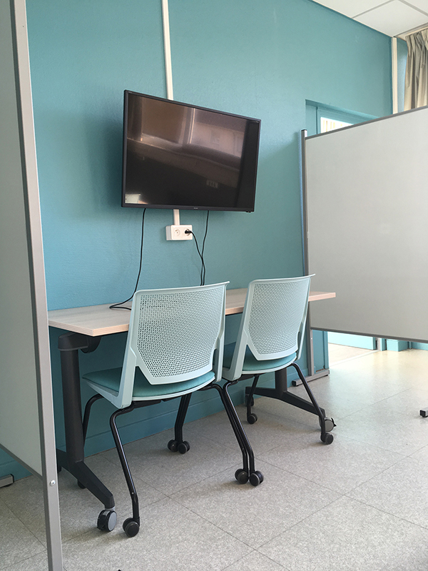 -> A Nancy-Scarpone, un espace pédagogique (G51) et ses 2 annexes ont été reconfigurés et aménagés avec nouveau mobilier et équipement numérique, permettant les pédagogies actives et un usage en autonomie de la part des étudiants pour la réalisation de leurs projets pédagogiques.