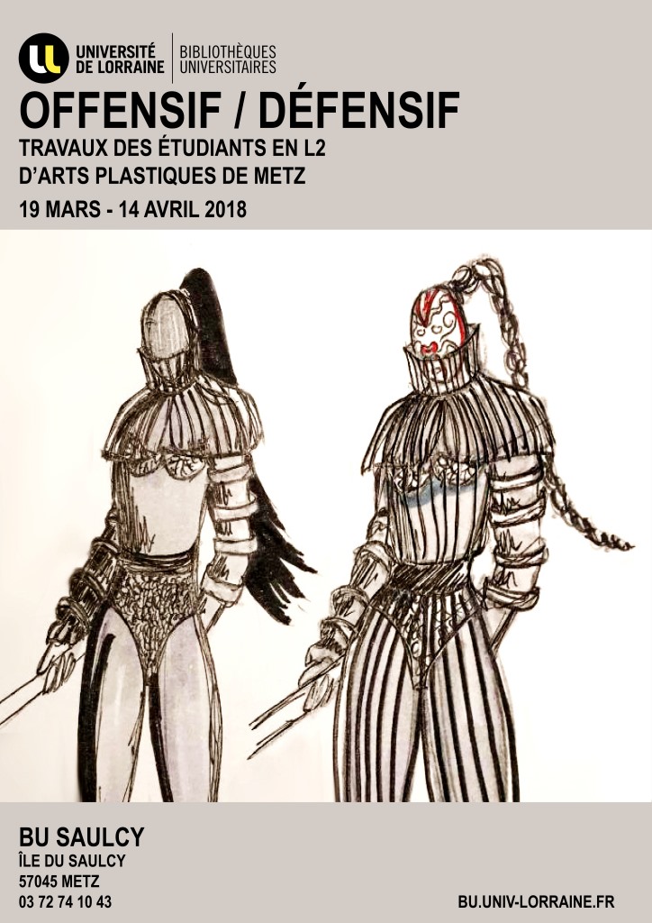 « Offensif / Défensif » entend interroger la dimension personnelle de l’auto-défense en tant que pratique quotidienne. Cette exposition proposée par les étudiant.es de Licence 2 Arts Plastiques offrira une rétrospective de l’élaboration de carapaces permettant à la fois de se préserver et de se défendre. En travaillant sur la traduction plastique de stratégies de protection mais aussi de réponse offensive, il s’agit de mettre en lumière les outils de résistance face à des systèmes oppressifs et d’en éprouver la combativité par des actions performées.