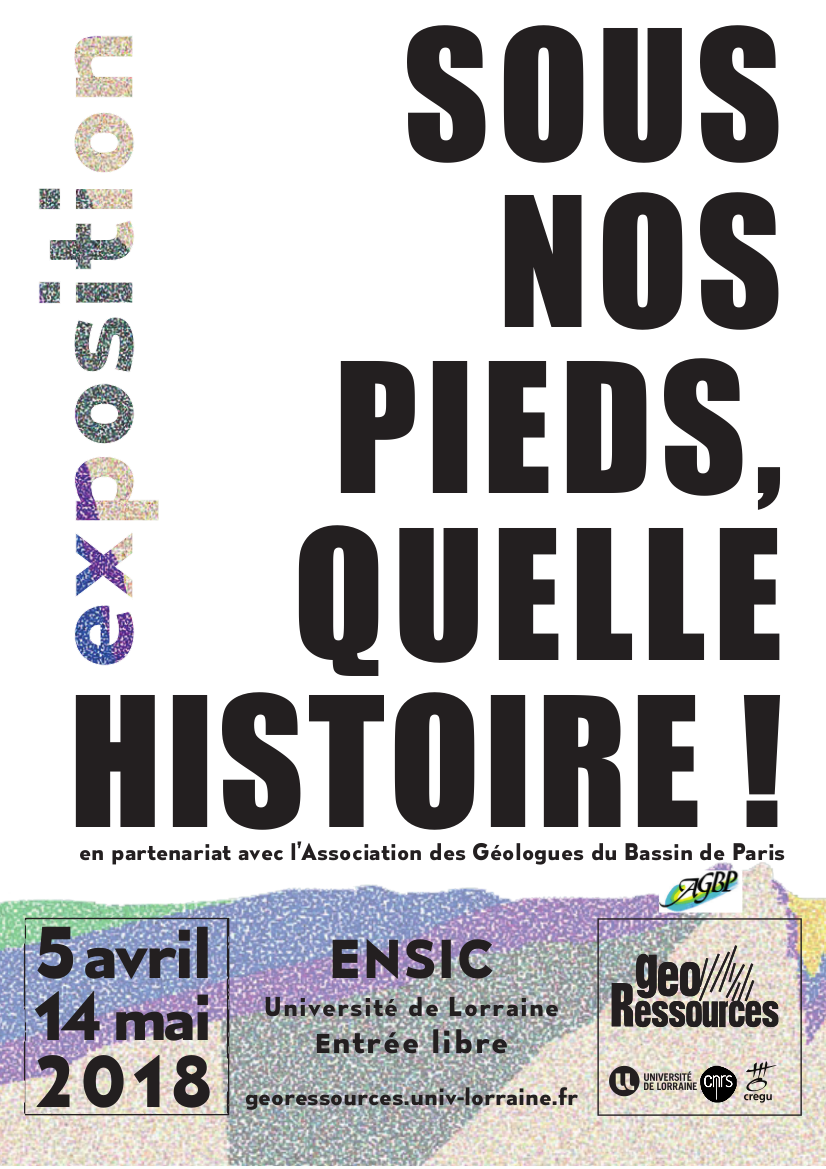 Conçue par le laboratoire de recherche GeoRessources (Université de Lorraine, CNRS, CREGU), en collaboration avec l'Association des Géologues du Bassin de Paris, l'exposition "Sous nos pieds, quelle histoire !" répond à toutes vos questions à la BU de l'ENSIC du 5 avril au 14 mai, du lundi au vendredi de 8h à 20h.