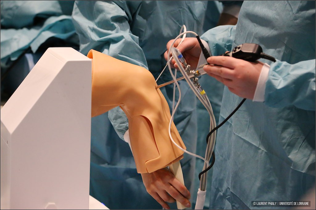 Les visiteurs, immergés dans une expérience unique, ont pu s’exercer, en remplaçant les vrais patients par des modèles artificiels :